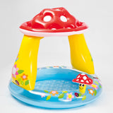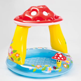 Piscina inflable de beb‚ con sombrilla en forma de champi¤on.